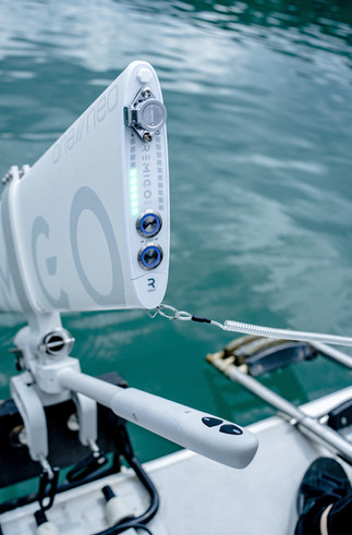 “RemigoOne Neo redefines marine propulsion with a fully integrated electric outboard that functions as a rudder. Compact, powerful, and emission-free, it delivers the performance of a petrol outboard with quiet operation, reduced maintenance, and a durable aluminum unibody built for real-world boating.”